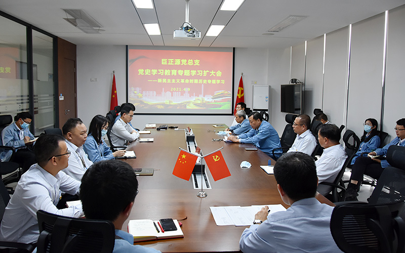 按照黨史學習教育工作安排,4月9日,巨正源黨總支召開黨史學習教育專題學習擴大會,專題學習新民主主義革命時期歷史,會議由黨總支副書記張寶業主持,公司黨員領導干部近30人參加了專題學習。