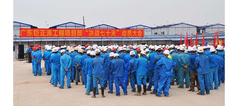 十建公司巨正源項(xiàng)目部項(xiàng)目經(jīng)理林育慶作動(dòng)員報(bào)告,提出了“決戰(zhàn)七十天”勞動(dòng)競(jìng)賽的目標(biāo)任務(wù)主要是:完成土建地坪12000平方米,道路6500米,完成鋼結(jié)構(gòu)安裝共計(jì)約500噸;壓縮機(jī)安裝19臺(tái);完成管道預(yù)制230000Din;完成電儀電纜1033千米、44千米。他表示,項(xiàng)目部上下緊緊圍繞投產(chǎn)目標(biāo),強(qiáng)化項(xiàng)目管理,確保安全、質(zhì)量與進(jìn)度并舉,全力打好巨正源項(xiàng)目沖刺攻堅(jiān)戰(zhàn),完成由項(xiàng)目施工到生產(chǎn)準(zhǔn)備的實(shí)質(zhì)性轉(zhuǎn)變,確保6.28開車成功。
