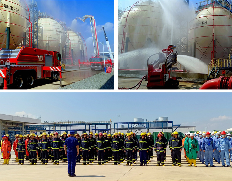 為深刻吸取湖北十堰“6.13燃氣爆炸重大事故教訓”,進一步提高石油化工火災處置能力及跨部門應急聯動水平,7月9日上午,由東莞市消防救援支隊、應急管理局、立沙島精細化園區管委會等部門聯合主辦、巨正源科技公司承辦的2021年石油化工滅火救援實戰演練在聚丙烯項目南區順利舉行。