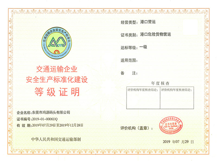 安全生產標準化一級企業