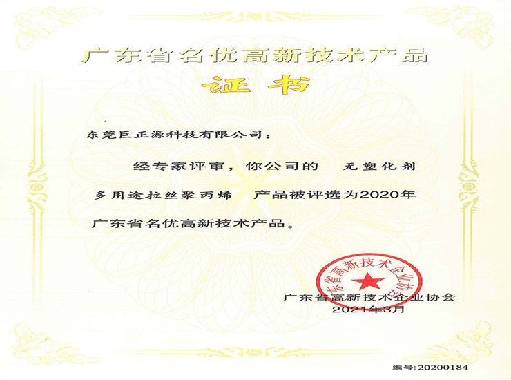 廣東省名優高新技術產品證書(拉絲料)